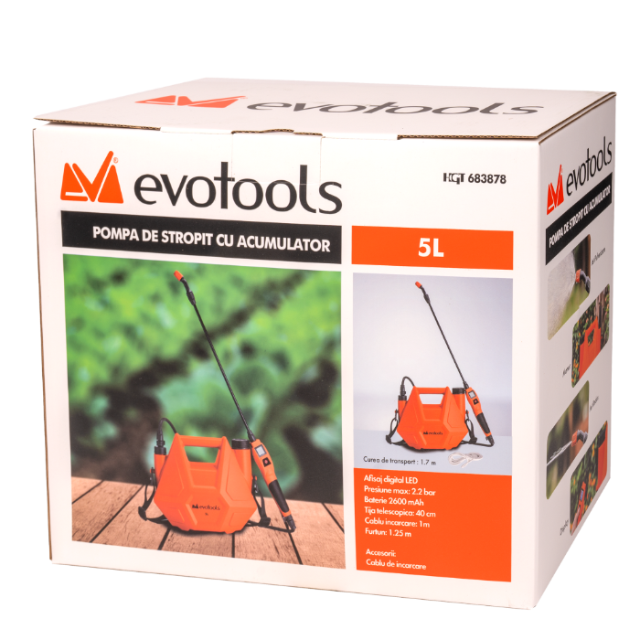 A bomba pulverizadora com bateria é a solução prática e eficiente para a manutenção de jardins, estufas ou plantas de interior. Com um design moderno na cor Orange Pantone 1655C combinado com preto, este modelo oferece conforto, mobilidade e desempenho constante.